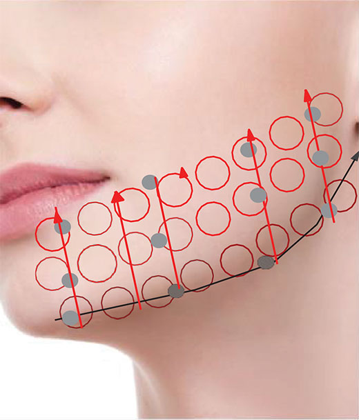 After applying points along the jawline, lightly press from bottom to top.
