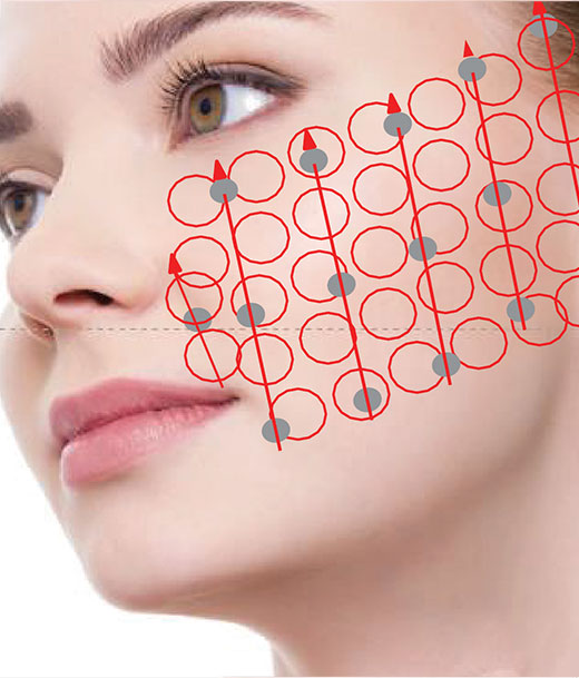 After applying points to the cheek area, lightly press from bottom to top.