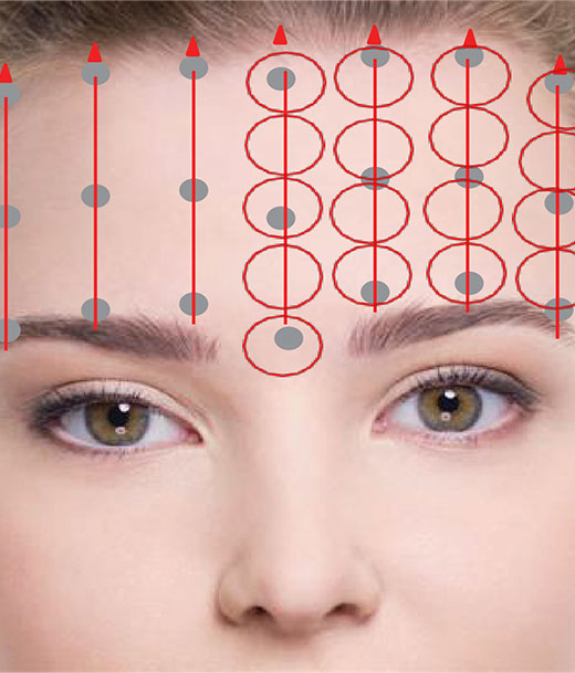 After applying points to the forehead, lightly press from bottom to top.