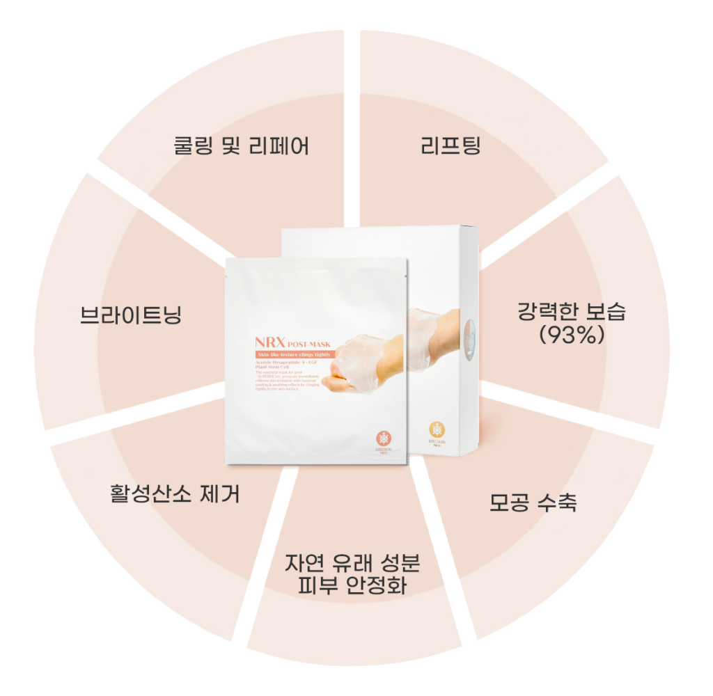Peeling, MTS, 각종 피부과 기기 사용 등 물리적 자극에 의해 극도로 민감해진 붉은 피부를 진정시키며 건강한 피부로 되돌려주는 사후 관리 특수 마스크입니다.